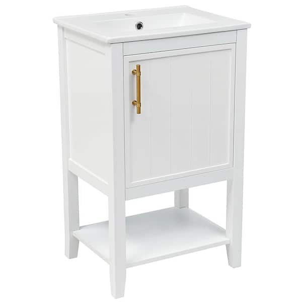 20 in. Freestanding Bath Vanity Cabinet in White with White Ceramic Sink, Soft Closing Door, Storage Rack