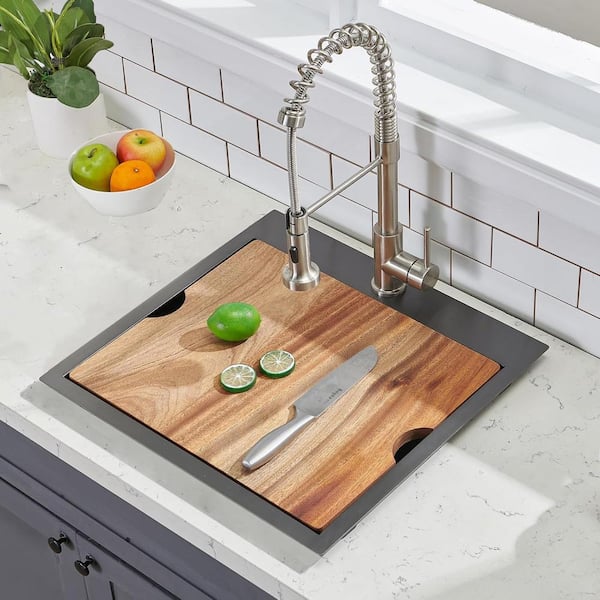 20 in. Stainless Steel Kitchen Sink Drop-In 6-Gauge Single Bowl with Cutting Board, Steel Grid and Strainer in Black