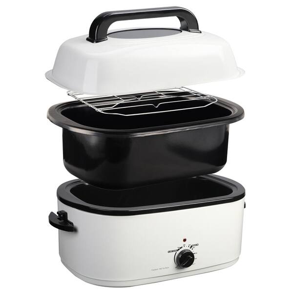 20 qt. Stainless Steel Chicken Electric Turkey Roaster with See-Through Lid in White