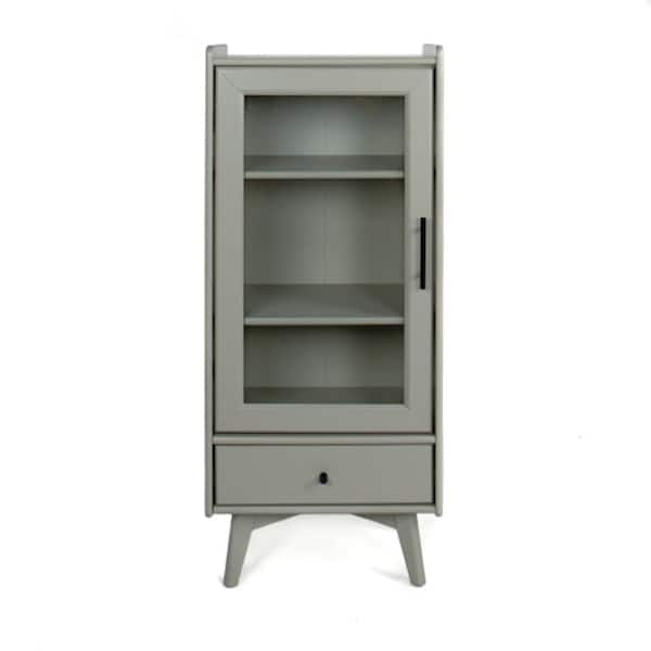 21.1 W x 8.75 H x 43.38 L Assembled Modern Bath Kitchen Cabinet in MDF w/ Glass Door, Adjustable Shelves, Drawer in Gray