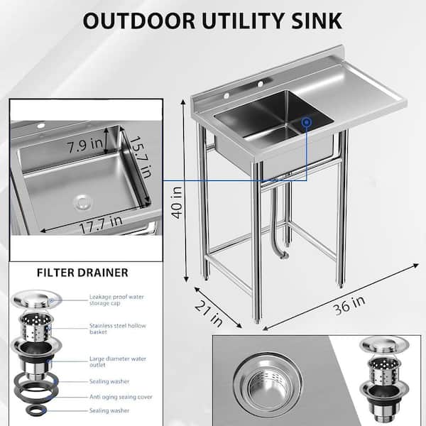 21 in. D x 36 in. W Freestanding Stainless Steel Single Bowl Utility Sink with 4 Knife Holders and Drainboard