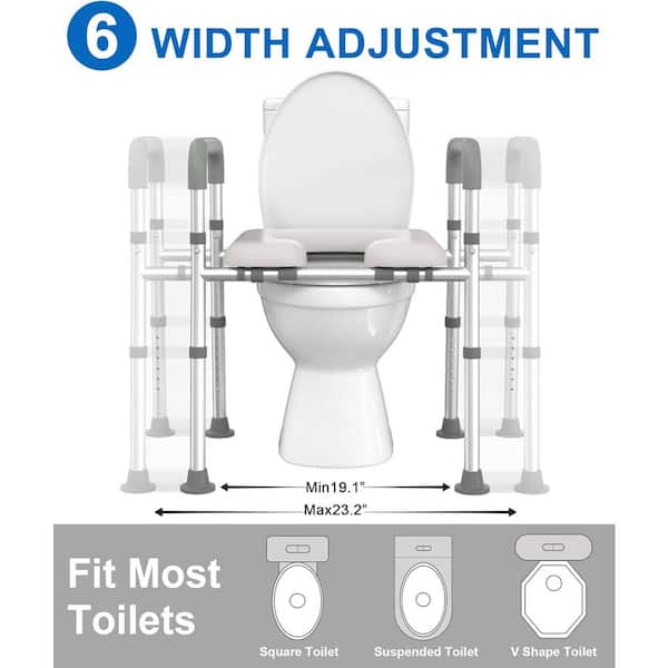 23.2 in. Toilet Seat Riser for Seniors with Handle, Adjustable Height & Width, Up to 400lbs