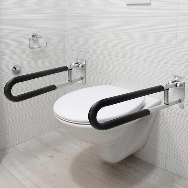 23 in. Black Padded Folding Grab Bars for Toilet, Seniors, Elderly, Disabled Bathroom Rail, Wall Mounted (2-Pack)