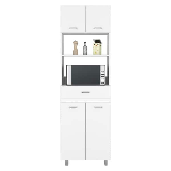 24.40 in. W x 16.10 in. D x 79.1 in. H Solid Wood Microwave Cabinet in White Double Door Drawer Shelf Ready to Assemble