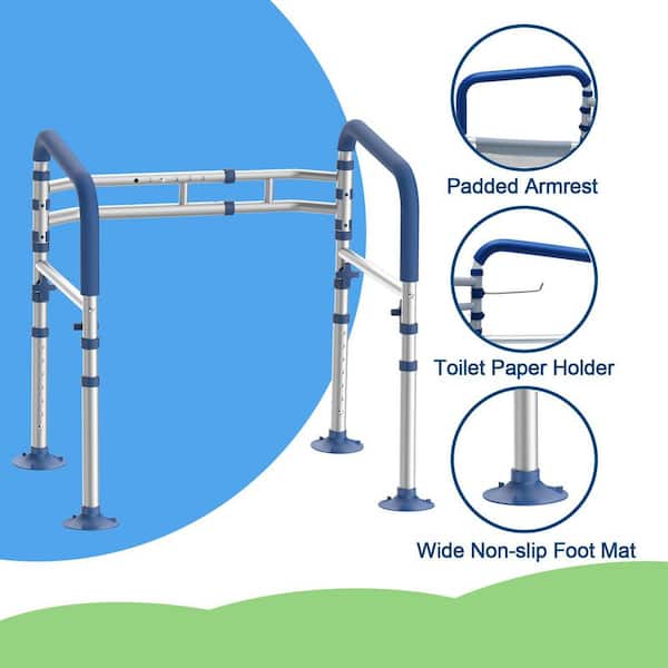 25.59 in. Toilet Safety Rail for Seniors and Pregnant Women, Adjustable Frame with Storage Bag-Foldable Support Handles