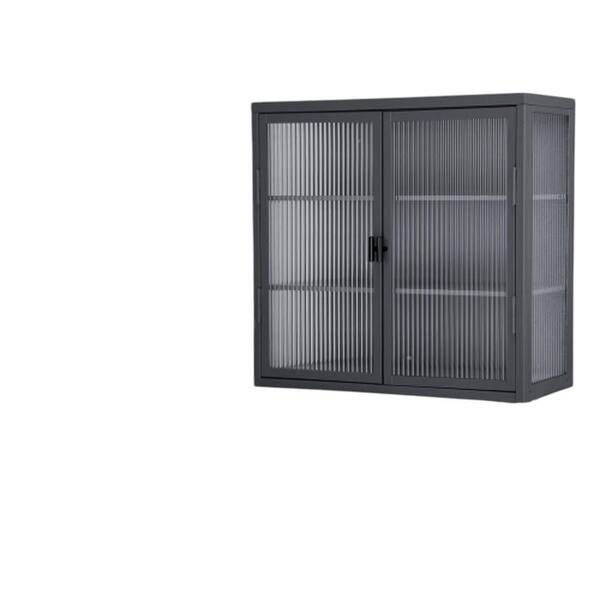27.60 in. L x 9.10 in. H x 23.60 in. W Double Glass Door Assembled Wall Cabinet with Detachable Shelves in Gray