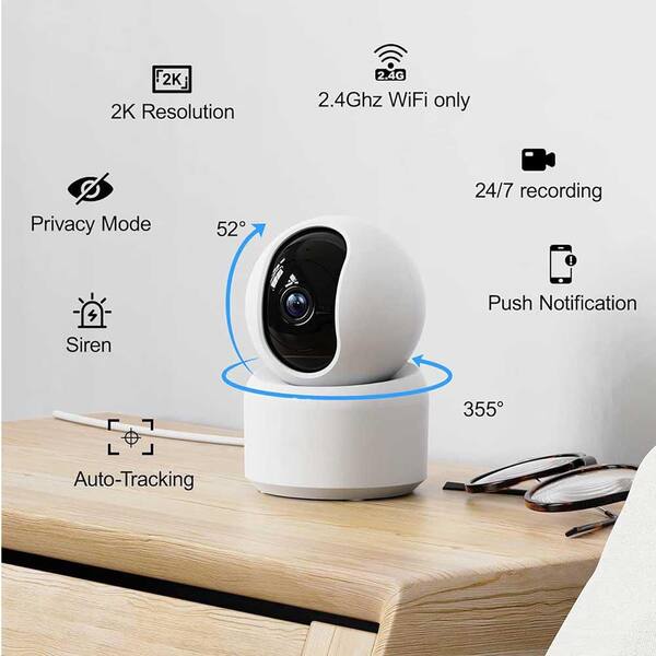 2K 360° Indoor Security Camera with Night Vision, 2.4G WiFi, Alexa and Google Assistant, 2-Pack