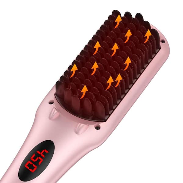 2in1 Ceramic Hair Ionic Straightener Brush with Anti-Scald Feature, Auto Temperature Lock and Auto-Off Function in Pink