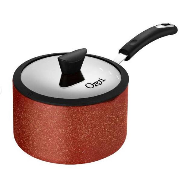 3.2 qt. Stone Layered with Aluminum Core Nonstick Saucepan in Red Clay with Silicone Coated Handle and Glass Lid