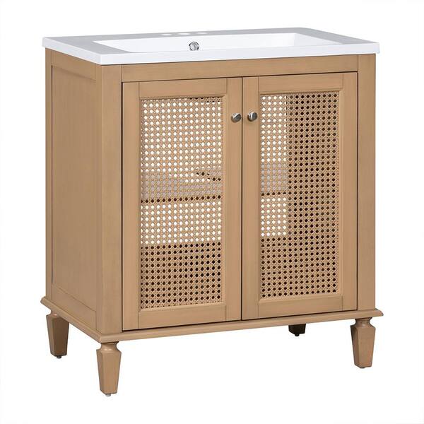 30 in. Freestanding Bath Vanity in Wood with Resin Sink & Top with Hidden Drawer, Soft Closing Doors & Solid Wood Frame
