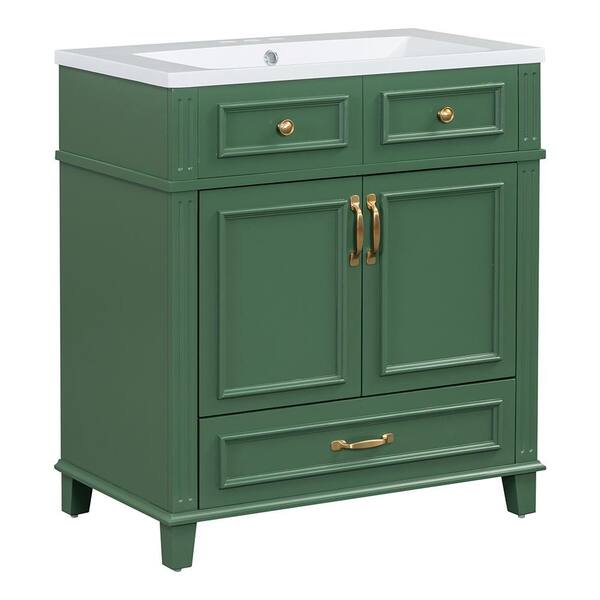 30 in. W x 18 in. D x 34 in. H Freestanding Bath Vanity Cabinet with Resin Top in Green with Soft Closing Doors & Drawer
