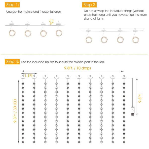300-Light Dimmable Fairy Curtain with Remote Timer 8 Modes Integrated LED USB Powered White for Room Party Chandelier