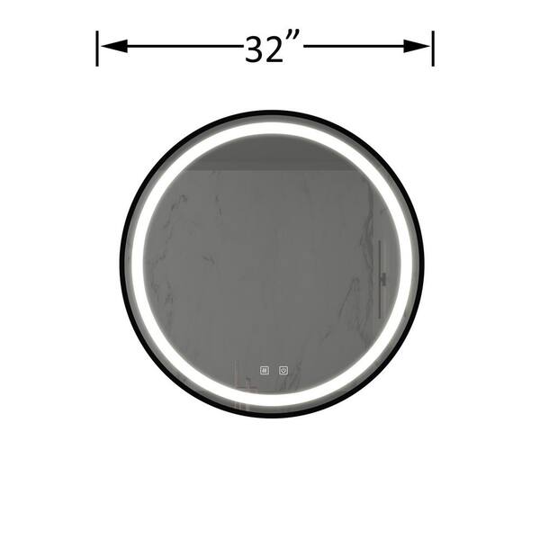32 in. Round Aluminum Alloy Frame Wall Bathroom Vanity Mirror with Focused Backplane, High Lumen, Dimmable Touch