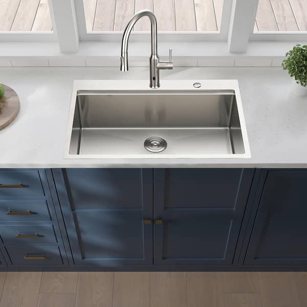 33 in. Drop-In 16-Gauge Single Bowl Stainless Steel Kitchen Sink with Workstation