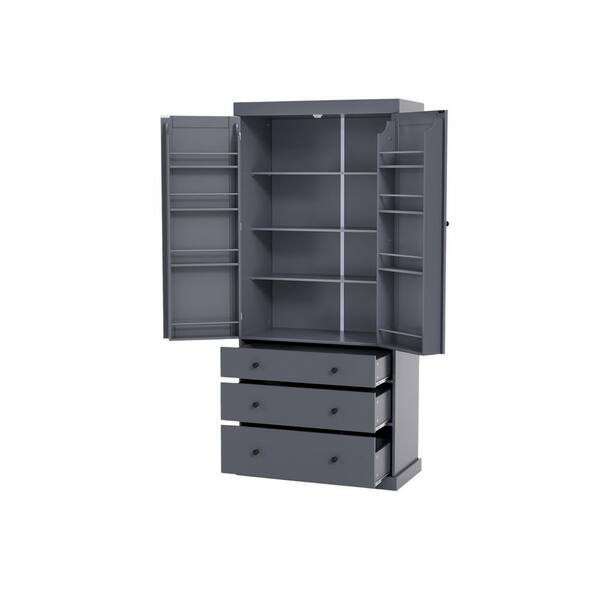 35 in. W x 17.7 in. D x 77 in. H in Gray MDF Ready to Assemble Kitchen Cabinet with 3 Adjustable Shelves and 3-Drawers