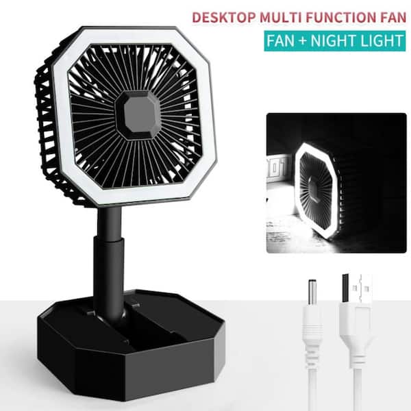 4.13 in. 3-Fan Speeds Personal Fan Mini Portable Hand Foldable USB Rechargeable Desktop Telescopic Fan Light, Black