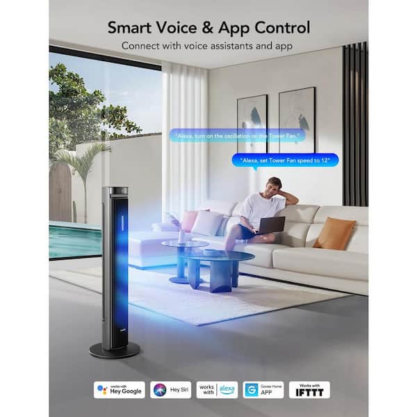42 in. 12-Fan Speeds Tower Fan in Gray Finish with Remote Smart Floor Fan 150° Oscillating APP and Voice Control 5 Modes