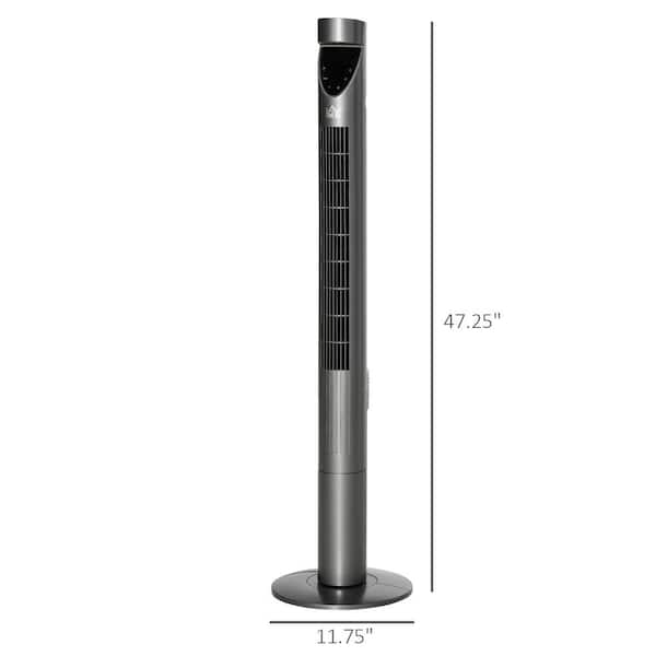46 in. 3 Fan Speeds Bladeless Tower Fan Gray Top Mounted Remote, LED Display, Air Filter, 12 H Timer and Night Light