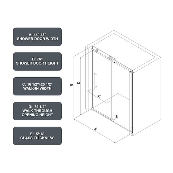 48 in. W x 76 in. Bathroom Frameless 1 Fixed and 1 Shifted Shower Door with Adjustable Closing Function Chrome Pivot