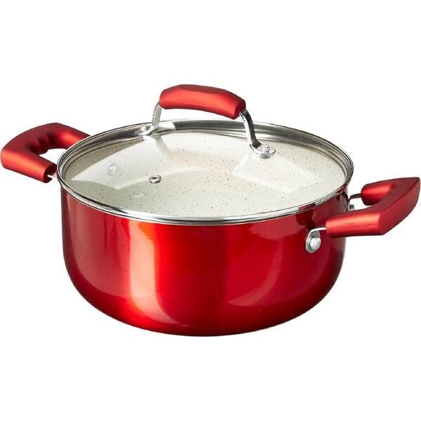 5 qt. Round Aluminum Nonstick Dutch Oven in Red with Glass Lid and Soft Touch Handles