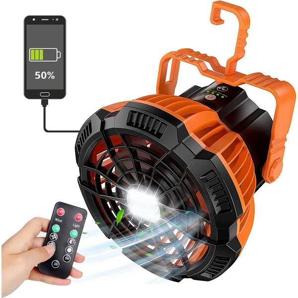 6.61 in. 3 Fan Speeds Personal Fan Camping fan with LED Lantern, 40H Work Time with Hang Hook and Remote, Orange Finish