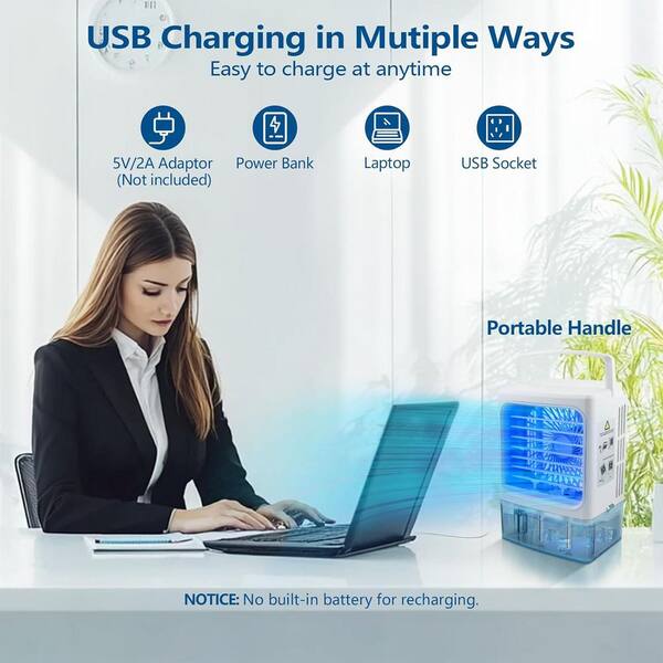 6-8 Hours Portable Air Conditioner Cooling Fan with 3-Speeds 2-Spray Outlets 7-Color Light, Timer for Office Car Camping