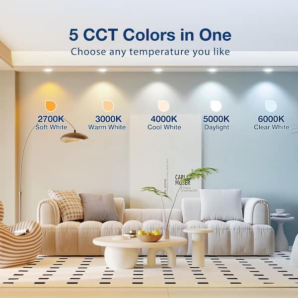 6 in. 12.5-Watt 950 Lumens LED Recessed Lighting 2700K-6000K 5CCT Selectable Retrofit can Lights w/ Baffle Trim 24-Packs