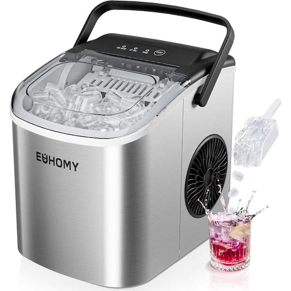8.74 in. 26 lbs. Stainless Steel Bullet Countertop PortableIce Maker Machine with Handle, Basket and Scoop, Silver