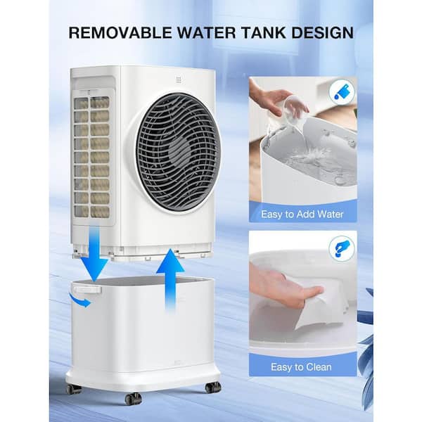 8H Timer Evaporative Air Cooler 3-in-1 Cooling Fan with Remote Control 4-Ice Packs 6.5L Tank 3-Modes 3-Speeds for Home