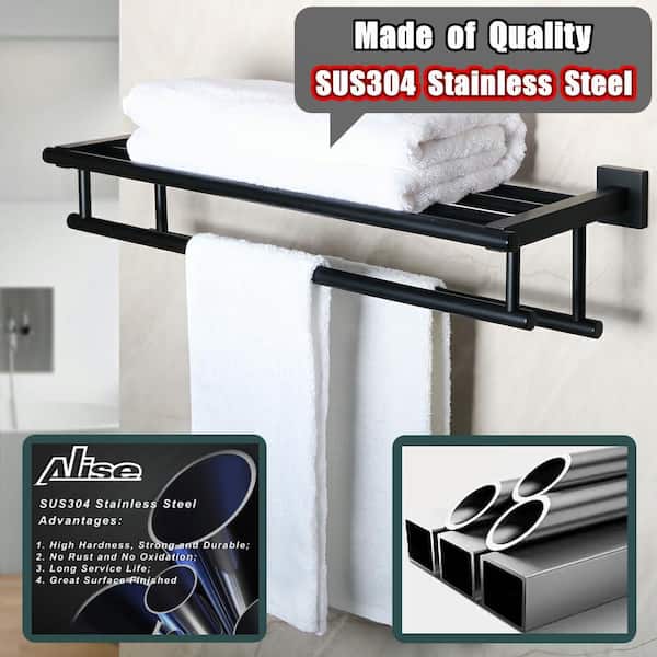 Alise Towel Rack, 24 in. Wall Mounted Towel Bar with Double Bars for Bathroom, Stainless Steel Matte Black