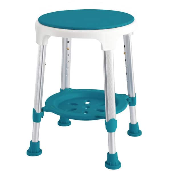 Aluminum Adjustable Height Bath Chair Stool with Shelf, 360° Swivel Shower Stool Seat for Bathroom in Dark Green