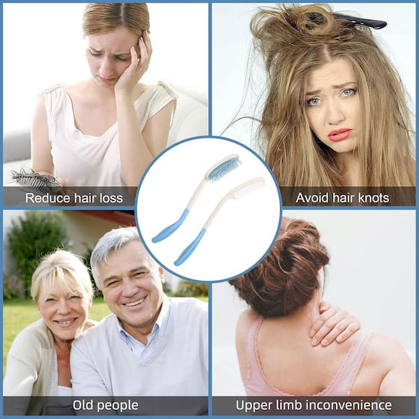 Bath Long Reach Ergonomic Handled Comb and Brush Set for Elderly and Hand-Disabled with Soft Bristles 2-Piece in Blue