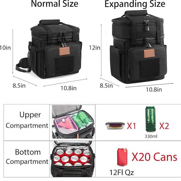 Black Reusable Tactical Lunch Bag Set of 1, Large Expandable and Insulated for Adults