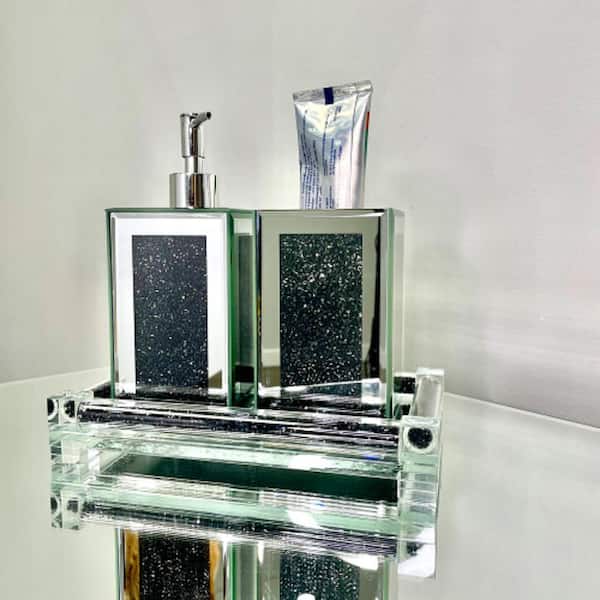 Countertop Square Soap Dispenser and Toothbrush Holder with Tray, 3-Piece in Black