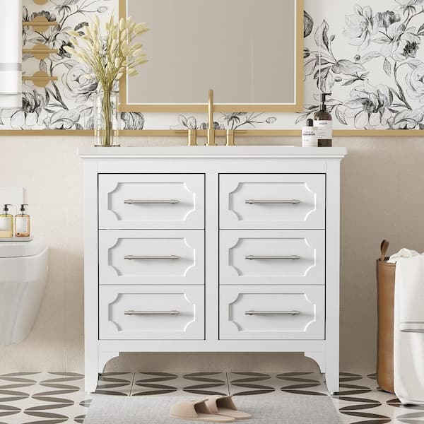 Elegant Appearance 18 in. W x 36 in. D x 34 in. H Freestanding Bath Vanity in White with Ceramic Sink Top and 4 Drawers