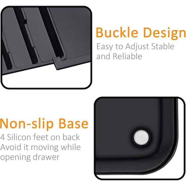 Expandable Silverware Organizer with 9-Compartments and 2-Knife Blocks, Adjustable Cutlery Tray Black