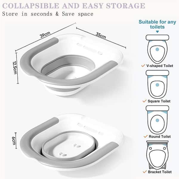 Foldable Sitz Bath Basin for Toilet Seat/Flusher Hose 14.17 in. L x 13.39 in. W x 2.36 in. H Personal Care Spa White