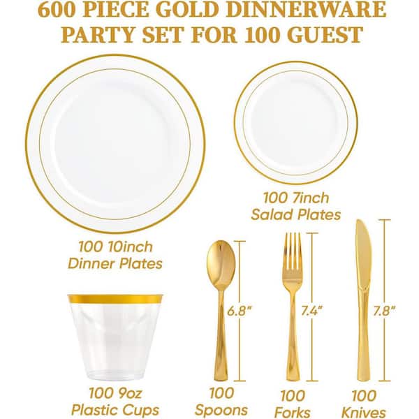 Gold Disposable Plastic Dinnerware Set for 100-Guests (600-Pieces)