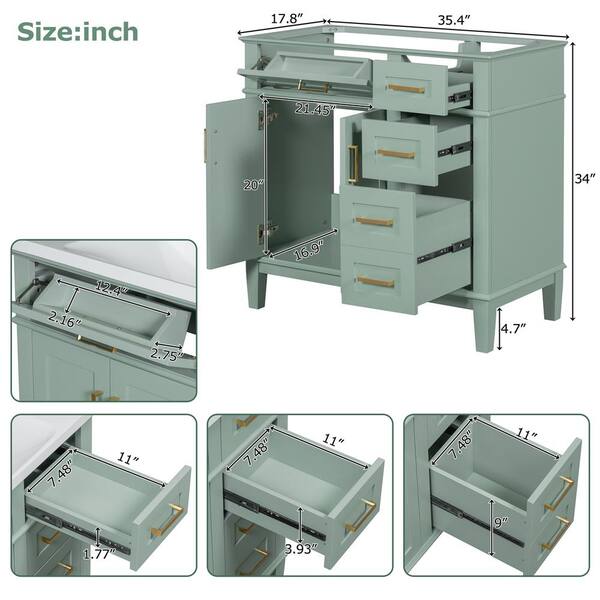 Modern 35.4 in. W x 17.8 in. D x 34 in. H Bath Vanity Cabinet without Top with Solid Wood and Soft Close-Doors in Green