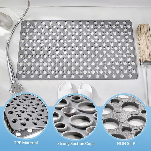 Non Slip Bathtub Shower Mat 30 in. L x 17 in. W Soft Bath Tub Mat Suction Cups Quick Dry Non Slip Bath Mat Gray
