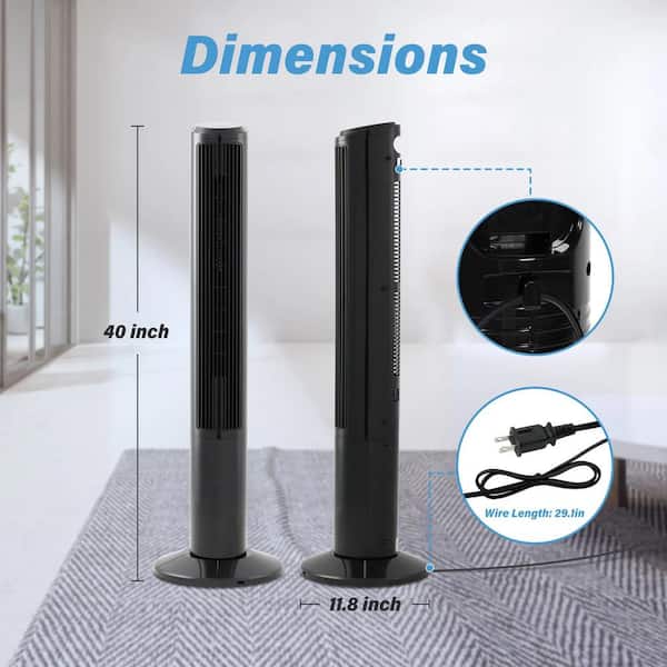 Oscillating 40 in. 3 Fan Speeds Bladeless Tower Fan in Black Insertable Remote, LED Control Panel 3 Modes and 12 H Timer