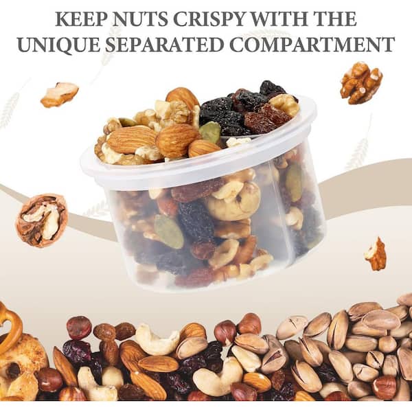 Overnight Oats Containers 4-Piece Set Divided Compartments with Lids Folding Spoons Small Glass 16oz Jars Food Storage