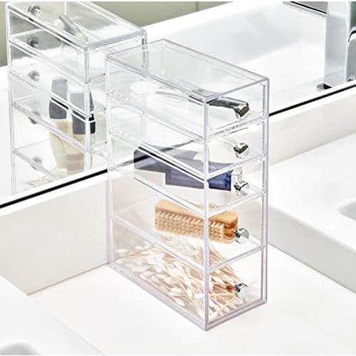 Plastic Cosmetic Organizer Free Standing 5 3-Short and 2-Tall Drawers 3.25 in. W x 7 in. D x 9.75 in. H in Clear