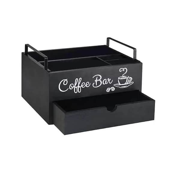 Rustic Wooden Tabletop Food Storage Box Snack Bar Tray with Non-Slip Rubber Mat for Kitchen and Cabinet Use, Black