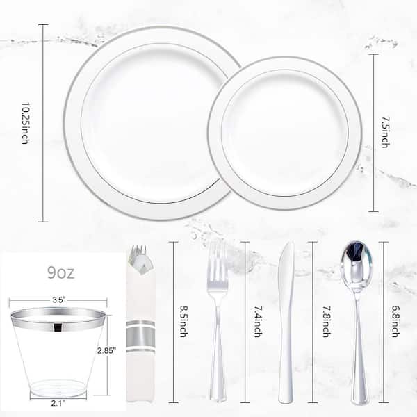 Silver Plastic Dinnerware Set - Disposable Plates, Cups and Cutlery for 50-Guests