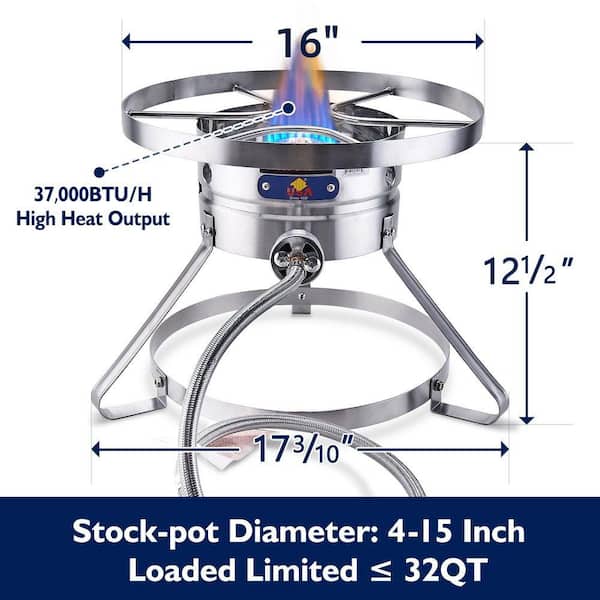 16 in. Stainless Steel Propane Burner with Rust-proof Hose and Adjustable Regulator, Great for Outdoor Cooking
