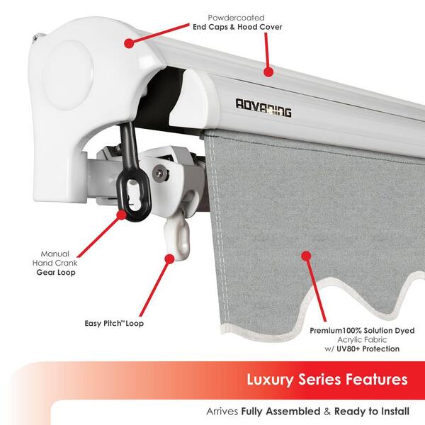 10 ft. Luxury Series Semi-Cassette Manual Retractable Patio Awning, Heather Gray (8 ft. Projection)