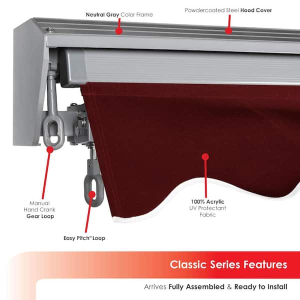 13 ft. Classic Series Semi-Cassette Electric w/ Remote Retractable Patio Awning, Burgundy (10 ft. Projection)