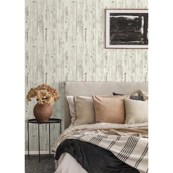 57.8 sq. ft. Albright White Weathered Oak Panels Strippable Wallpaper Covers