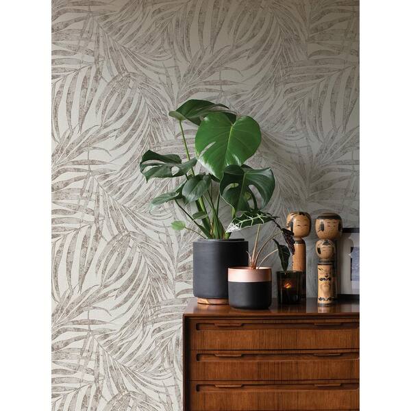 Anzu Pewter Frond Vinyl Wallpaper Roll